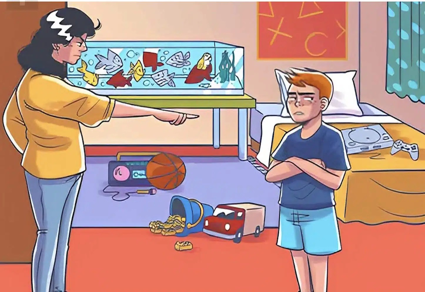 Η εικόνα απεικονίζει μια μητέρα φωνάζει στον γιο της.