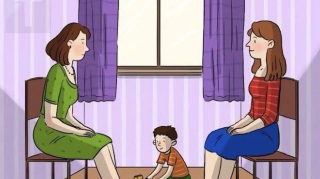 Η μητέρα του παιδιού είναι η γυναίκα στα αριστερά. Κάθεται με τρόπο που τα πόδια της κατευθύνονται προς το παιδί. Η στάση του σώματος της γυναίκας στα αριστερά είναι προστατευτική και γέρνει ελαφρώς μπροστά. Είναι φυσικό για τα μικρά παιδιά να κοιτούν την μάνα τους όταν παίζουν για να νιώθουν ασφάλεια.
