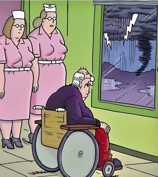 Αυτό το παζλ έχει σχεδιαστεί για να ξεγελάει τα μάτια σας. Με την πρώτη ματιά, η σκηνή φαίνεται απλή—ένας άνδρας σε αναπηρικό καροτσάκι, δύο νοσοκόμες και μια θυελλώδης σκηνή έξω από το παράθυρο.