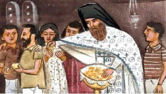 Καί μάλιστα καλόν θά είναι — καί τό κάνουν πολλοί χριστιανοί αυτό — νά μήν τό τρώτε όλο τό Αντίδωρο πού παίρνετε από τόν Ιερέα, γιά νά έχετε απ’ αυτό στό σπίτι σας καί νά τρώτε ενα μικρό κομματάκι κάθε μέρα τό πρωί, μετά τήν πρωινή σας προσευχή.