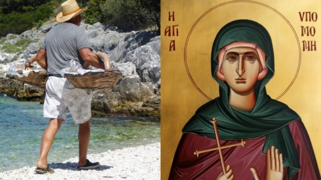 Πήρα ό,τι εικόνα Αγίων είχα σπιτι μου και έφυγα για την παραλία του Σχοινιά. Φόρεσα ένα καπέλο για τον ήλιο που κάλυπτε τα μάτια μου για να μην πέσω σε κανέναν γνωστό και ξεκίνησα. Δεν θα ξεχάσω ποτέ την πρώτη φορά που άπλωσα την εικόνα της Αγίας Υπομονής σε μια λουόμενη και της είπα με τρεμάμενη φωνή “Σας παρακαλώ πάρτε την έχω ανάγκη”. Σιγά σιγά εκείνη τη μέρα, με τον ήλιο να με καίει σαν πάγος, τις πούλησα όλες. Όλες εκτός απ’ την Αγία Υπομονή.