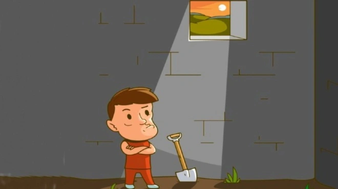 Απάντηση: Ο Τζακ θα πρέπει να χρησιμοποιήσει το φτυάρι για να φτιάξει ένα ύψωμα από χώμα κάτω από το παράθυρο, να ανέβει πάνω και να ξεφύγει από το κελί του.