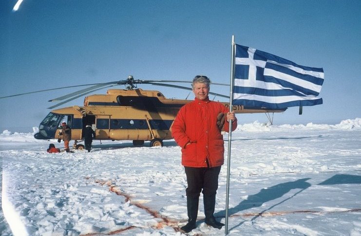 Ο Μπάμπης Μπίζας θυμάται το ελικόπτερο-φορτηγό 100 τόνων του ρωσικού στρατού με το οποίο πέταξε από το αεροδρόμιο της Χιλιανής Παταγονίας έως τον καταυλισμό του Παγετώνα Γιούνιον, αλλά και το ελικοφόρο με τα παγοπέδιλα που τον μετέφερε 2.000 χλμ. από τη στεριά, στις 90 μοίρες νότιο γεωγραφικό πλάτος, εκεί που διέρχεται ο νοητός άξονας της Γης.