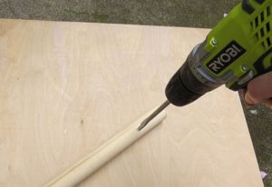 Ανοίξτε μια τρύπα σε κάθε σημάδι που κάνατε στους πείρους 1 1/4 ιντσών. Ξεκινήστε με μικρή διάμετρο κεφαλή στο τρυπάνι και συνεχίστε με τρυπάνη 5/8.