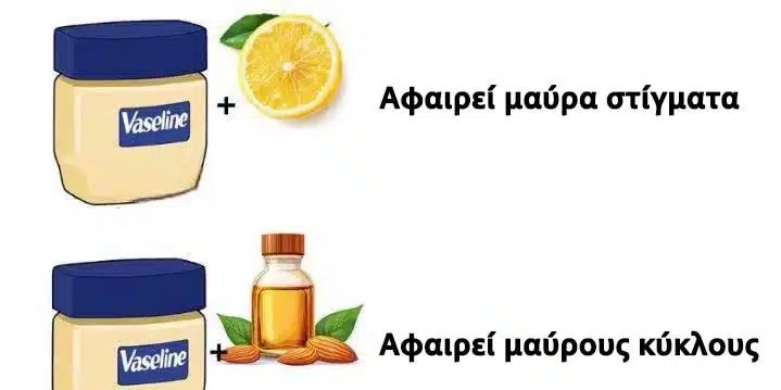 Δεν είναι θεραπεία για τους μαύρους κύκλους. Ενώ η βαζελίνη παρέχει ενυδάτωση, δεν περιέχει ενεργά συστατικά που μειώνουν τους μαύρους κύκλους ή τη μελάγχρωση.