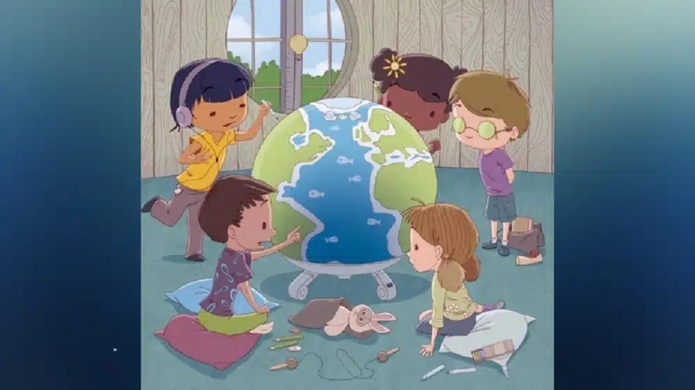 Στην παρακάτω εικόνα βλέπετε μία παρέα παιδιών που παίζουν με μία υδρόγειο. Κάπου στην εικόνα είναι κρυμμένη μία μπανάνα. Μπορείτε να την βρείτε σε 6 δευτερόλεπτα;