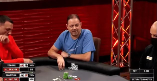 Ο Clogston τα στοιχημάτισε όλα με ένα ζευγάρι τζακ, και το στοίχημά του έγινε δεκτό από τον Iyengar, ο οποίος είχε ένα άλλο τζακ στο χέρι, καθώς και έναν άσο