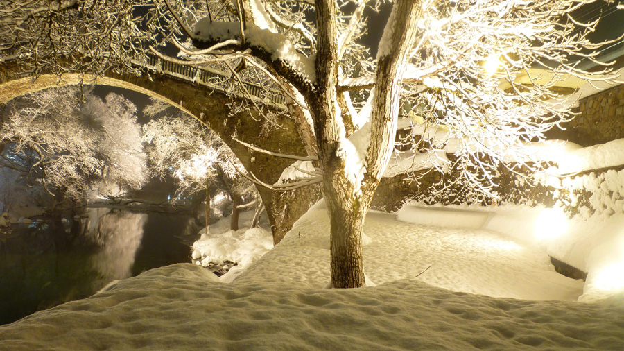 Μόλις φτάσει κάποιος στο χωριό, τον καλωσορίζει με μια μεγάλη γέφυρα. Η συγκεκριμένη γέφυρα βρίσκεται πάνω από τον Αώο από το 1748 και συνδέει τους δύο μαχαλάδες από κάθε πλευρά του ποταμού. Πρόκειται για την παλαιότερη γέφυρα που βρίσκεται σε χρήση στο Ζαγόρι. Αυτή η γέφυρα είναι ένα από τα ελάχιστα ομοιώματα σε όλη τη χώρα. Ωστόσο, μπορεί κανείς εύκολα να καταλάβει πως είναι ανθεκτική.