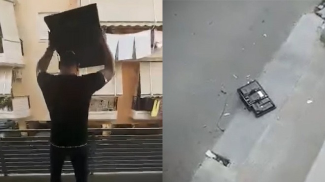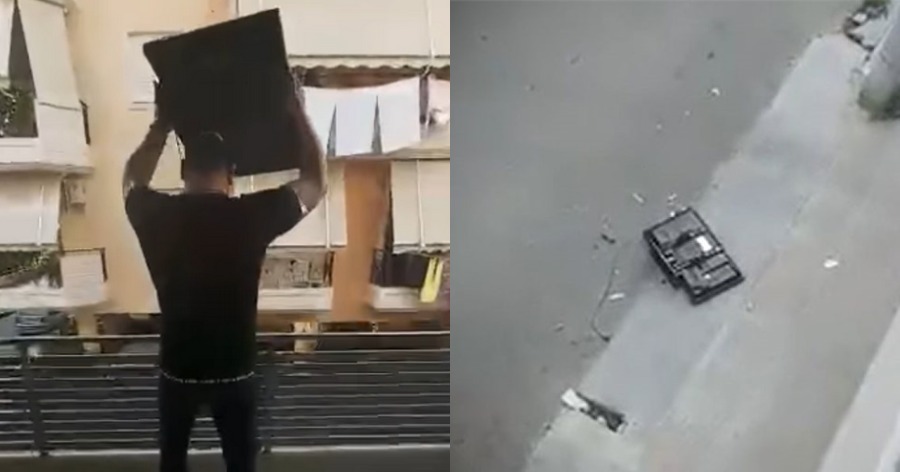 βγήκε με την τηλεόραση στο μπαλκόνι και την πέταξε από κάτω.