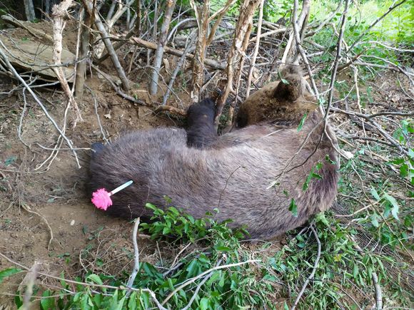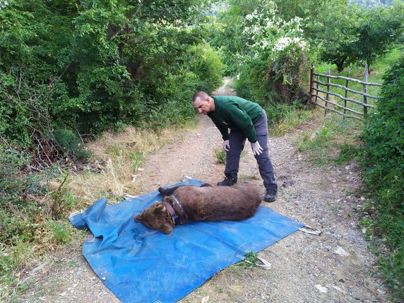 Η Ομάδα Άμεσης Επέμβασης (ΟΑΕ) μετέβη στο σημείο όπου πράγματι διαπίστωσε ότι το άτυχο ζώο είχε πιαστεί σε παγίδα από συρματόσχοινο. Η αρκούδα είχε παγιδευτεί από τον κορμό και στην προσπάθειά της να απεγκλωβιστεί είχε τραυματιστεί σε αρκετά σημεία του σώματός της.
