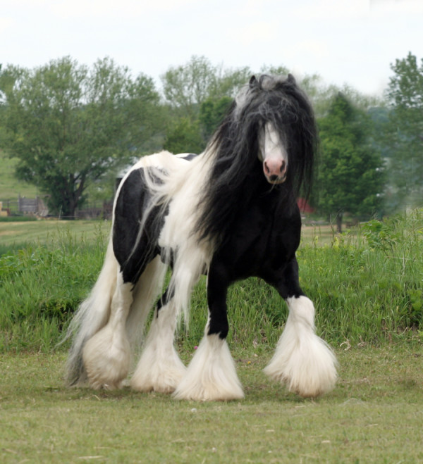 Εύκολα αναγνωρίζεται από τα τριχωτά πόδια του και το ασπρόμαυρο τρίχωμα. Θεωρείται πολύ σπάνιο τσιγγάνικο άλογο.