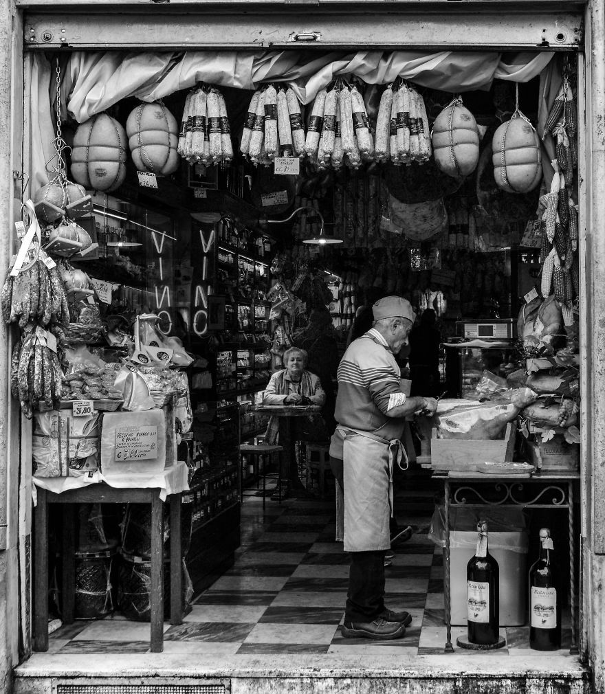 Γυναίκες που περιμένουν να σερβιριστούν σε ένα κατάστημα με αλλαντικά στη Ρώμη, Piazza de la Rotonda.