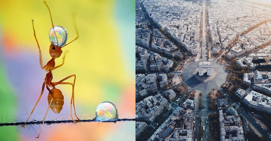 Ο φωτογράφος χρειάστηκε 4 ώρες για να τραβήξει αυτό το πλάνο ενός μυρμηγκιού που έφερε σταγόνες νερού απλωμένες σε ένα κομμάτι νήμα