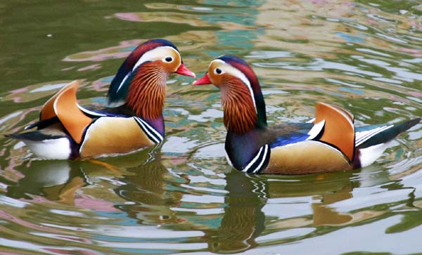 Οι πάπιες μανδαρίνοι είναι εντυπωσιακές. Αν κάποιος τις δει για πρώτη φορά και ειδικότερα τις αρσενικές, είναι βέβαιο πως θα εντυπωσιαστεί. Τα φτερά των παπιών μανδαρίνων διαθέτουν υπέροχα χρώματα. Μάλιστα, τα συγκεκριμένα χρώματα καλύπτουν όλα εκείνα που διαθέτει το ουράνιο τόξο. Αυτό μάλιστα συμβαίνει, χωρίς καμία δόση υπερβολής.