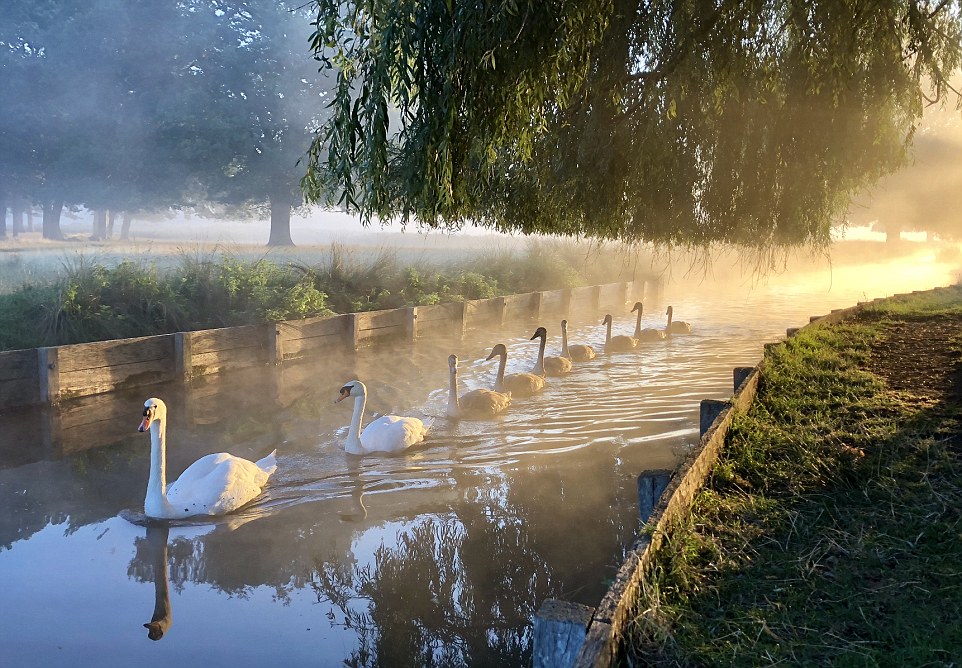 Μία μαγευτική φωτογραφία που δείχνει μία ευτυχισμένη οικογένεια κύκνων, τραβήχτηκε από τον Τζέιμς Μακ Ντόναλντ στο πάρκο Bushy Park, στο νοτιοανατολικό Λονδίνο.