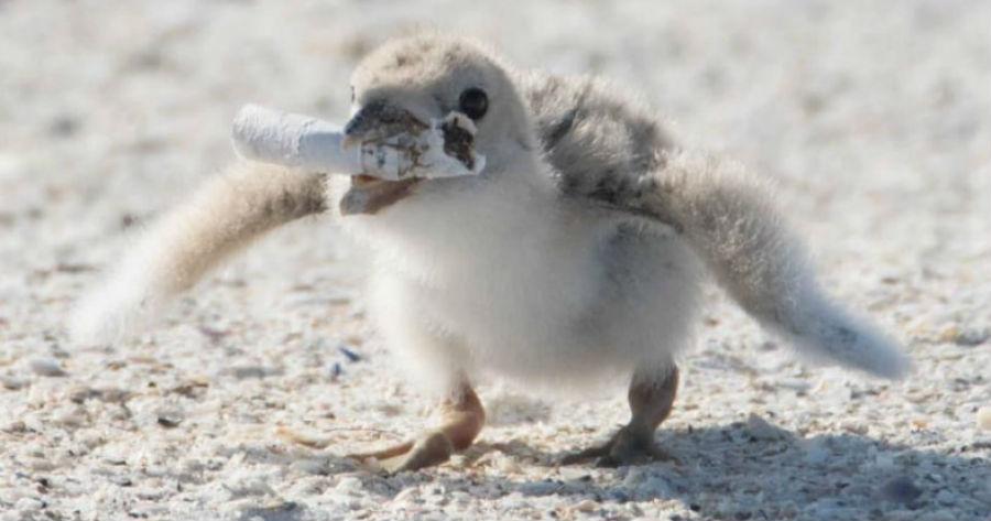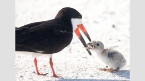 Ένα πουλί σε ακτή της Φλόριντα, ταΐζει το μικρό της με τσιγάρο!
