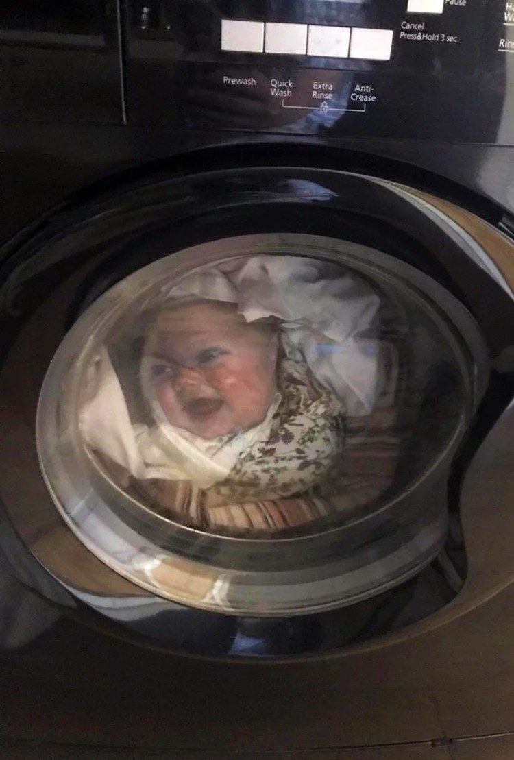 Την τρομάρα της ζωής του πήρε ένας πατέρας όταν μπαίνοντας στο μπάνιο είδε το μωρό του να στροβιλίζεται μέσα στο πλυντήριο με τα ρούχα. Ευτυχώς, αυτό… που πέρασε για το παιδί του δεν ήταν παρά ένα t-shirt που έχει στάμπα το πρόσωπο του μωρού.
