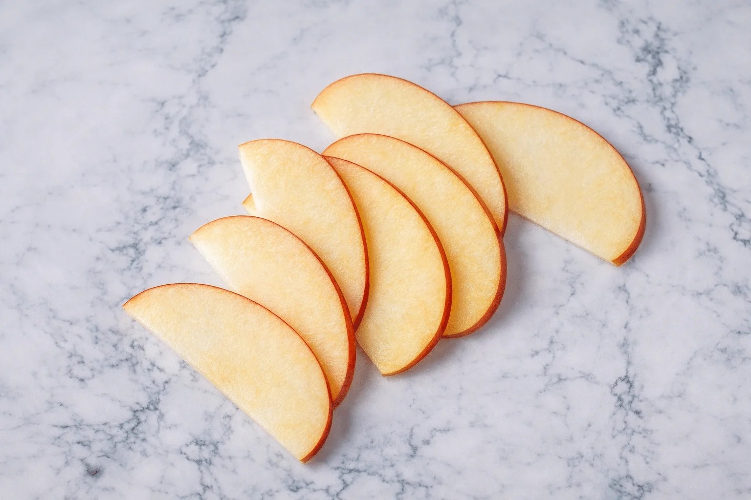 - Κόψτε μία ή δύο φέτες μήλου (καλύτερα όχι πολύ λεπτές)