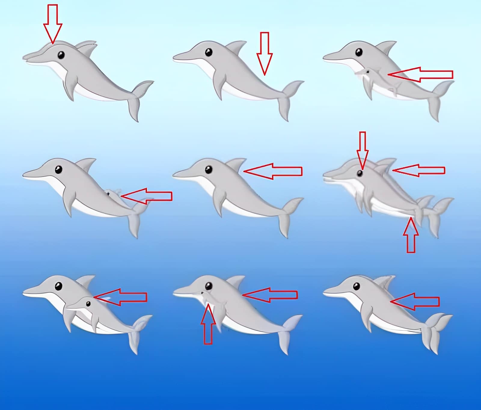 Ο καθένας έχει τον δικό του αριθμό. Μπορείτε και εσείς να προσπαθήσετε να βρείτε όλα τα δελφίνια. Όλοι θα συμφωνήσουν με εννέα δελφίνια. Αλλά υπάρχουν περισσότερα από αυτά.