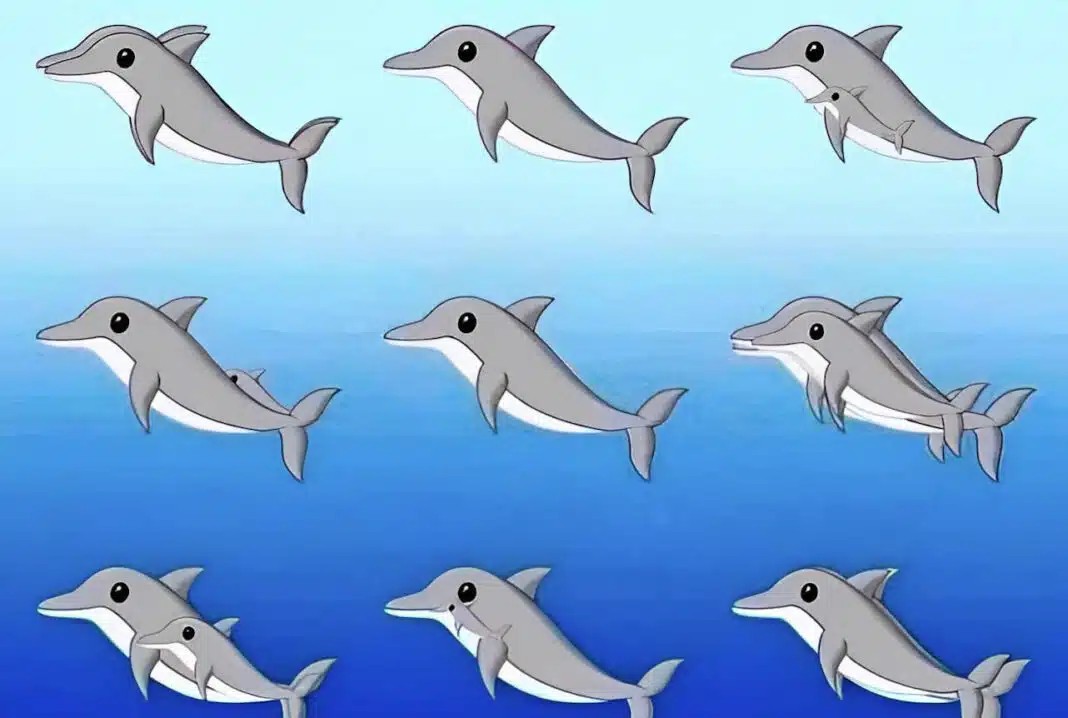 Ο καθένας έχει τον δικό του αριθμό. Μπορείτε και εσείς να προσπαθήσετε να βρείτε όλα τα δελφίνια. Όλοι θα συμφωνήσουν με εννέα δελφίνια. Αλλά υπάρχουν περισσότερα από αυτά.