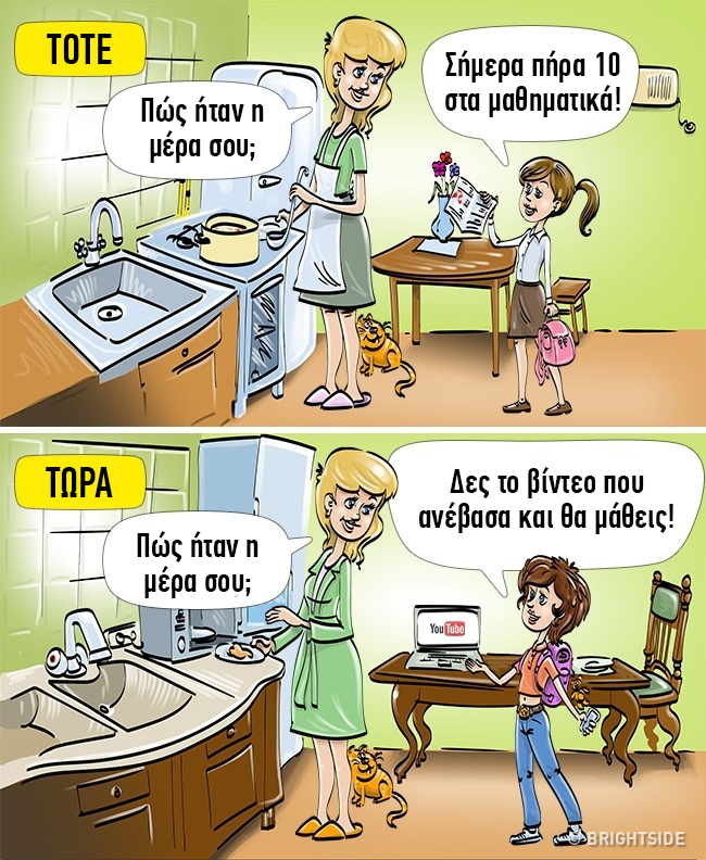 Θα σας παρουσιάσουμε 14 σκίτσα με τις πιο έντονες διαφορές, τα οποία θα σας δημιουργήσουν μία νοσταλγία για την παιδική σας ηλικία, ενώ στο τέλος υπάρχει μια μνήμη που ενώνει τις δύο γενιές.