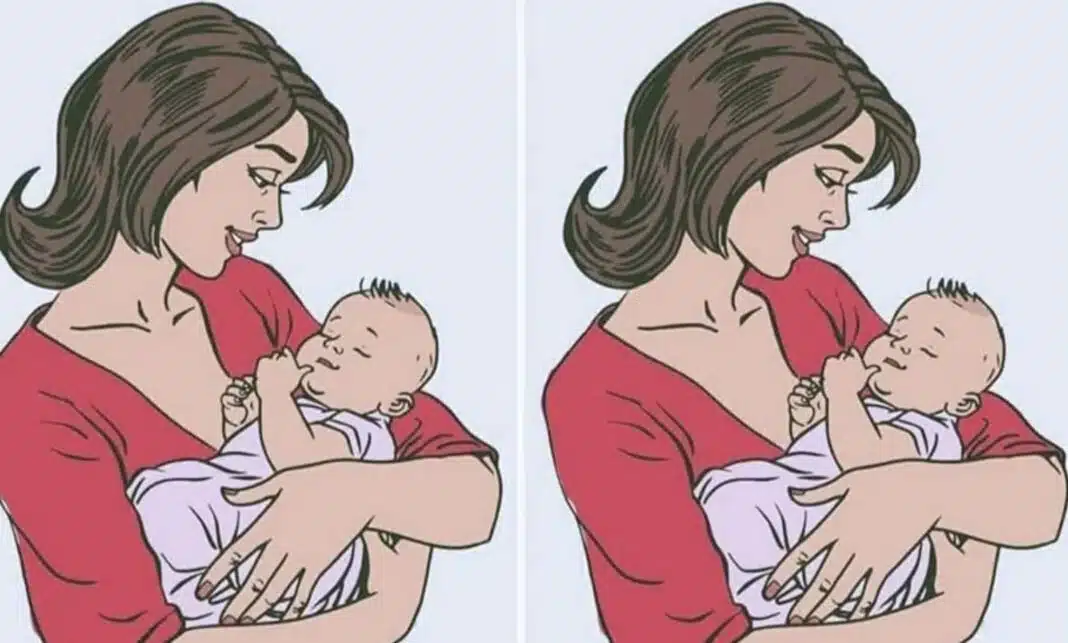 Με μια πρώτη ματιά, όλα στην εικόνα μοιάζουν ίδια: μια τρυφερή στιγμή μεταξύ μιας μητέρας και του μωρού της, σχεδιασμένη με λεπτή προσοχή. Αν όμως κοιτάξετε λίγο πιο προσεκτικά, θα προσέξετε πως κάτι δεν ταιριάζει. Κάπου υπάρχει μια μικρή διαφορά που περιμένει ήσυχα να την ανακαλύψετε—και μπορεί να βρίσκεται στο τελευταίο μέρος που θα φανταζόσασταν.