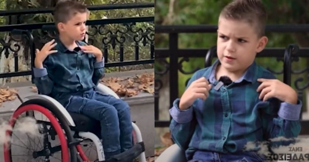 Στη συνέχεια ο μικρός Παναγιώτης συγκλονίζει, ζητώντας από τον κόσμο να μην χλευάζει τα άτομα με κινητικά προβλήματα… «Να μην κοροϊδεύετε ποτέ τους ΑΜΕΑ τονίζει με παράπονο: «Θέλω να πω στον κόσμο, να μην κοροϊδεύετε ποτέ τους ΑμεΑ. Έχω νιώσει ότι με κοροϊδεύουν αλλά δεν θα ήθελα να το αναφέρω…»