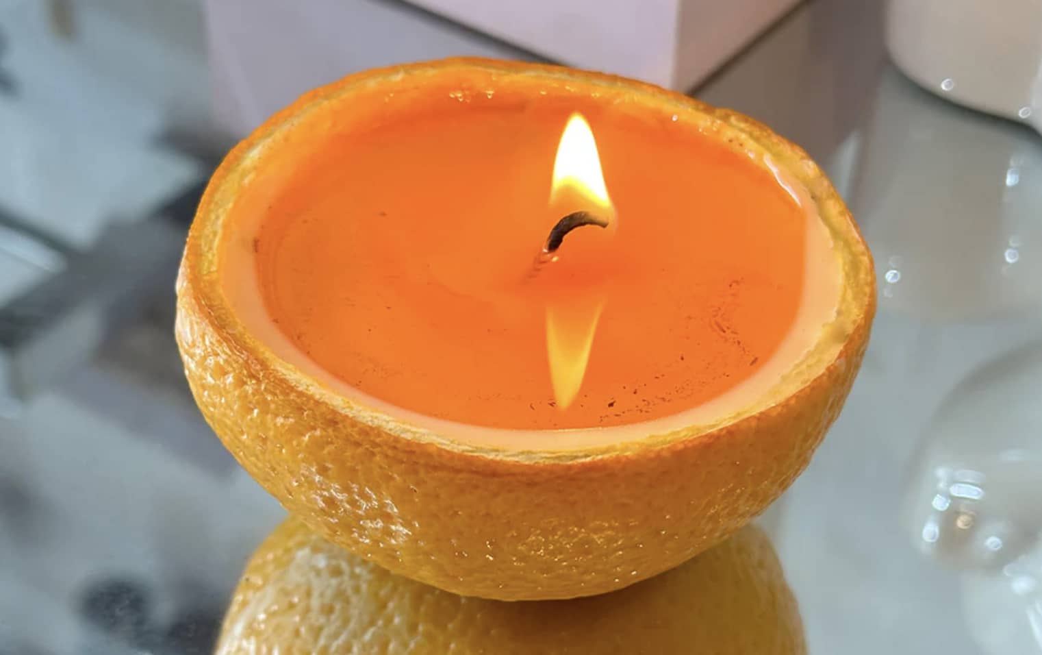 Κόψτε ένα πορτοκάλι στη μέση, αφαιρέστε τη σάρκα και γεμίστε το κενό με λιωμένο κερί και φιτίλι. Όταν το κερί στερεοποιηθεί, ανάψτε το για να απολαύσετε απαλό φως και ελαφρύ άρωμα εσπεριδοειδών.