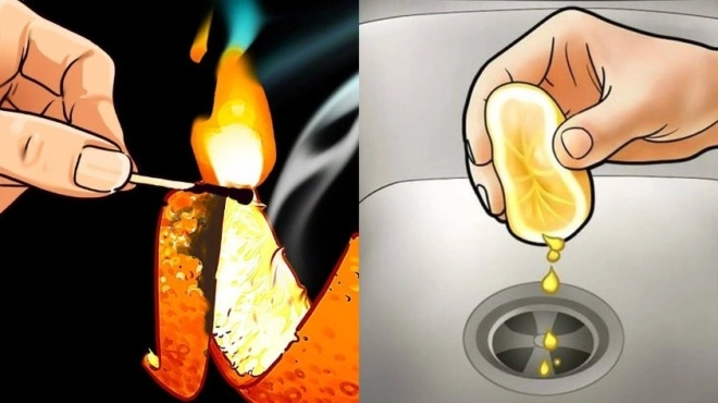 Μυρίζει δυσάρεστα η αποχεύτευση στο νεροχύτη σας; Κόψτε ένα λεμόνι ή ένα πορτοκάλι και στύψτε το μέχρι να βγει όλος ο χυμός.