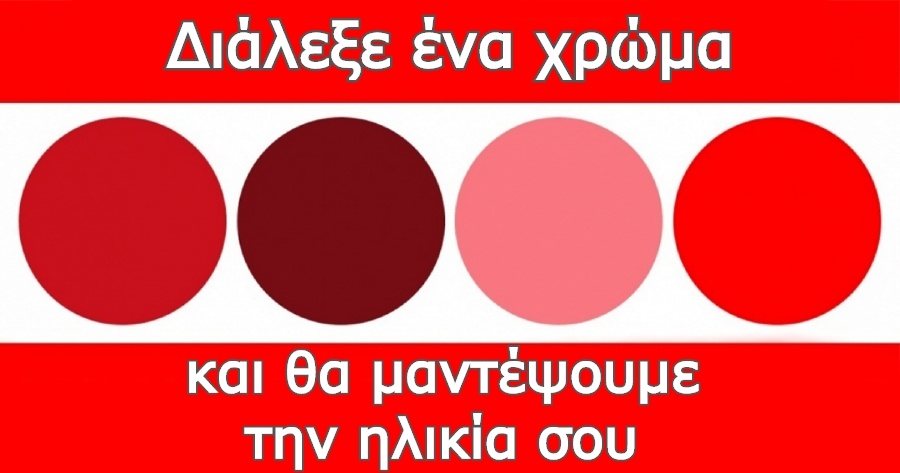 Παρακάτω θα βρείτε ένα τεστ χρωμάτων που θα σας βοηθήσει να καταλάβετε την ψυχική σας ηλικία. Το μόνο που έχετε να κάνετε είναι να επιλέξετε μια απάντηση και να δείτε σε πόσους βαθμούς αντιστοιχεί. Προσθέστε στο τέλος όλους αυτούς τους βαθμούς, για να μάθετε το αποτέλεσμα.