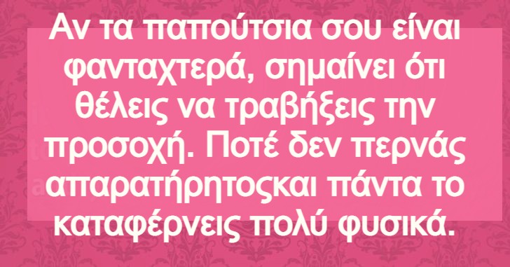 Πρόσφατες μελέτες που πραγματοποιήθηκαν από το Πανεπιστήμιο του Κάνσας αναφέρουν ότι το 90% της προσωπικότητάς σας μπορεί να αποκαλυφθεί από τα παπούτσια σας. Αυτό σημαίνει ότι τα αγαπημένα σας υποδήματα υποδεικνύουν περισσότερες πληροφορίες για εσάς από ό, τι μπορείτε να φανταστείτε.