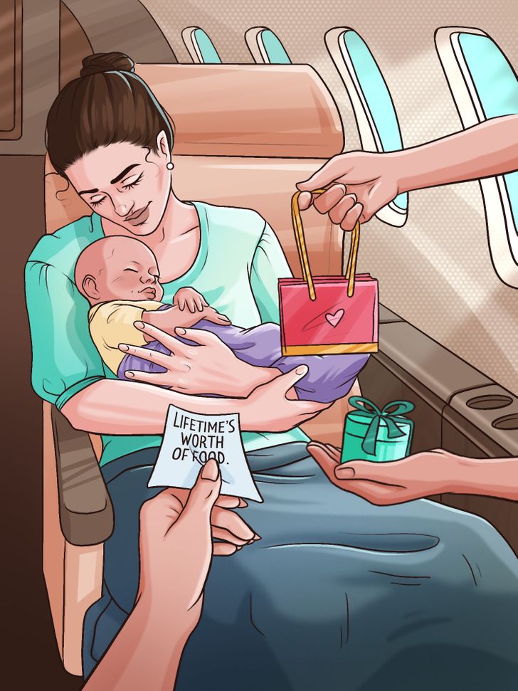Τα μωρά μπορεί να πάρουν ακόμη και δώρα από τις αεροπορικές εταιρείες. Το 2018, ένα κοριτσάκι γεννήθηκε σε μια πτήση Chick-fil-A. Της δίνονται τρόφιμα για όλη της την ζωή και της εγγυήθηκε ακόμη μια θέση εργασίας για όταν φτάσει στην παραγωγική ηλικία.