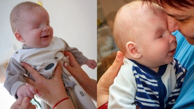 Δυστυχώς, ο μικρός Σάσα δεν θα μπορέσει ποτέ να δει. Ωστόσο, οι γιατροί του έχουν εμφυτεύσει μικρές σφαίρες στις κόγχες σαν οφθαλμούς προκειμένου να διασφαλιστεί ότι το πρόσωπό του δεν παραμορφώνεται καθώς μεγαλώνει.