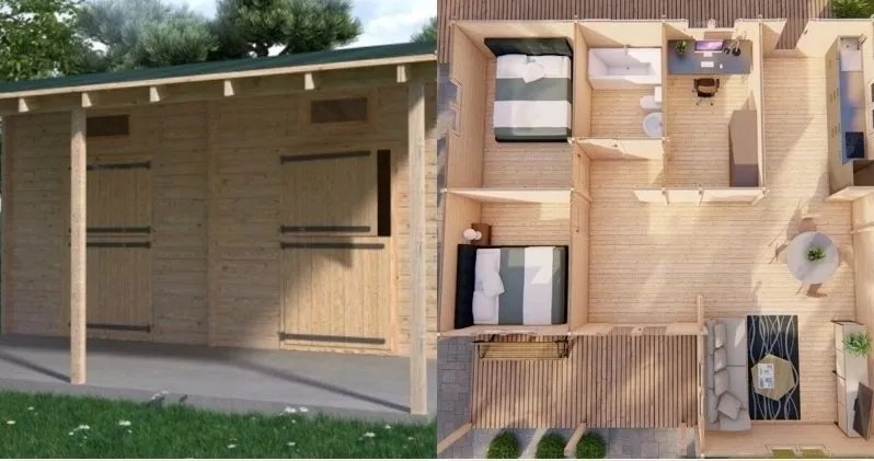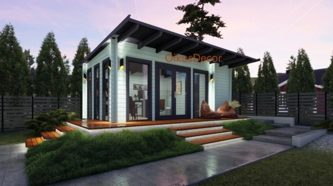 Για παράδειγμα στο site της Ελληνικής εταιρίας oikosdecor βλέπουμε το σπίτι MERCATO II 31,5m2. Όπως σημειώνει η εταιρία: ΣΠΙΤΙ FSC πιστοποιημένης Σκανδιναβικής ξυλείας. Πολυχρηστικό ξύλινο σπίτι Mercato με δίρριχτη οροφή ιδανικό για επαγγελματική χρήση, καντίνα, αίθουσα υποδοχής, γραφείο, χώρος γυμναστικής ή χαλάρωσης. Πακέτα διπλής τοιχοπoιίας και εμποτισμένης ξυλείας είναι διαθέσιμα γι’ αυτό το σπίτι αναλόγως των απαιτήσεων».