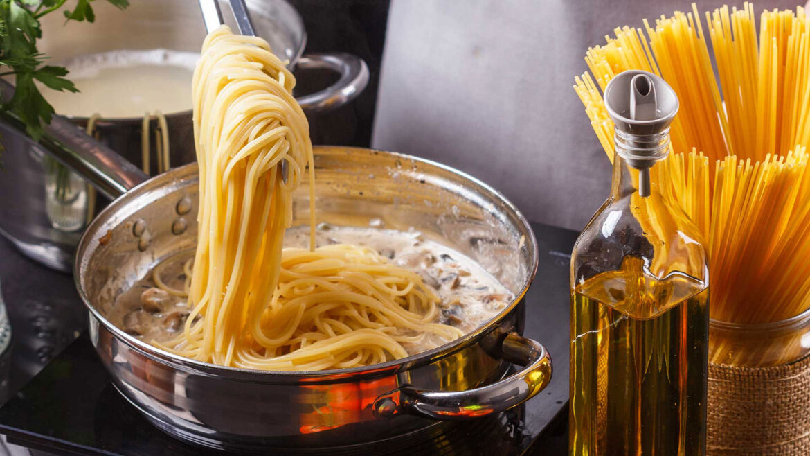 Το ελαιόλαδο στην κατσαρόλα είναι μύθος! Δεν εμποδίζει το κόλλημα, απλώς εμποδίζει τη σάλτσα να δέσει. Ρίξε 1 κουταλιά της σούπας χοντρό αλάτι μόλις βράσει το νερό.