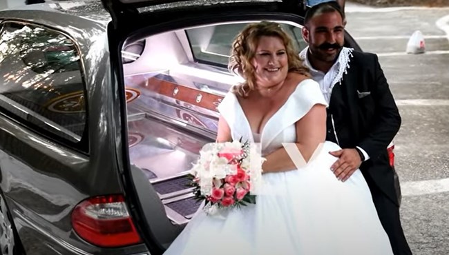 Με το στόμα ανοιχτό έμειναν οι κάτοικοι της Σπάρτης, όταν είδαν έναν γαμπρό, υπάλληλο σε γραφείο τελετών να κατευθύνεται στην εκκλησία για να παντρευτεί την εκλεκτή της καρδιάς του όχι σε λιμουζίνα, αλλά σε στολισμένη νεκροφόρα, στον πιο μακάβριο γάμο της ιστορίας.