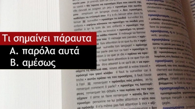 Για παράδειγμα, ξέρετε τι σημαίνει η λέξη «πάραυτα» και η έκφραση «εξ απαλών ονύχων»; Είστε σίγουροι; Αν δώσατε καταφατική απάντηση, τότε μη χάνετε χρόνο, σας περιμένει το τεστ για να το διαπιστώσετε.