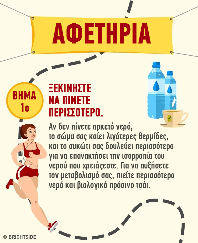 1ο βήμα – Το αρχικό βήμα μετά την αφετηρία: Ξεκινήστε να πίνετε περισσότερο νερό