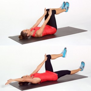 Ξαπλώστε με την πλάτη προς τα κάτω και τεντώστε τα χέρια σας προς τα επάνω ενώ σηκώνετε αργά το ένα πόδι σας με το γόνατο λυγισμένο ώστε να αγγίξει την παλάμη σας. Επιστρέψτε στην αρχική θέση και επαναλάβετε την άσκηση με το άλλο χέρι και πόδι. Μην ξεχάσετε τον βασικό κανόνα εδώ. Το δεξί χέρι πάει με το δεξί πόδι και το αριστερό χέρι με το αριστερό πόδι.