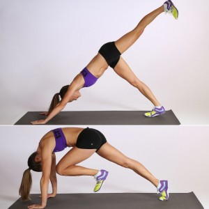 Αρχικά στηρίξτε τον εαυτό σας στα χέρια και τα πόδια σας ώστε να σχηματίσετε ένα τρίγωνο στο δάπεδο. Σηκώστε το ένα πόδι σας όσο πιο ψηλά μπορείτε όπως στην πρώτη εικόνα και μετά κατεβάστε το αργά και δοκιμάστε να ακουμπήσετε την άκρη της μύτης σας με το γόνατό σας. Επιστρέψτε στην αρχική σας θέση και επαναλάβετε.