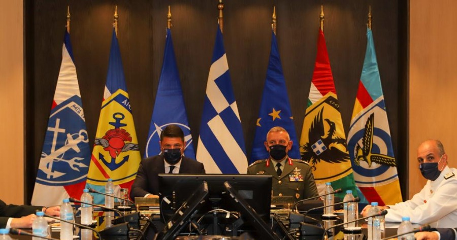 Στη σύσκεψη συμμετείχαν ο αρχηγός ΓΕΕΘΑ, στρατηγός Κωνσταντίνος Φλώρος, ο υπαρχηγός ΓΕΕΘΑ, αντιναύαρχος Ιωάννης Δρυμούσης, ο επιτελάρχης ΓΕΕΘΑ, αντιπτέραρχος Γεώργιος Φασούλας, καθώς και ο διευθυντής Α Κλάδου/ΓΕΕΘΑ, υποστράτηγος Ιωάννης Τσιόπλος.