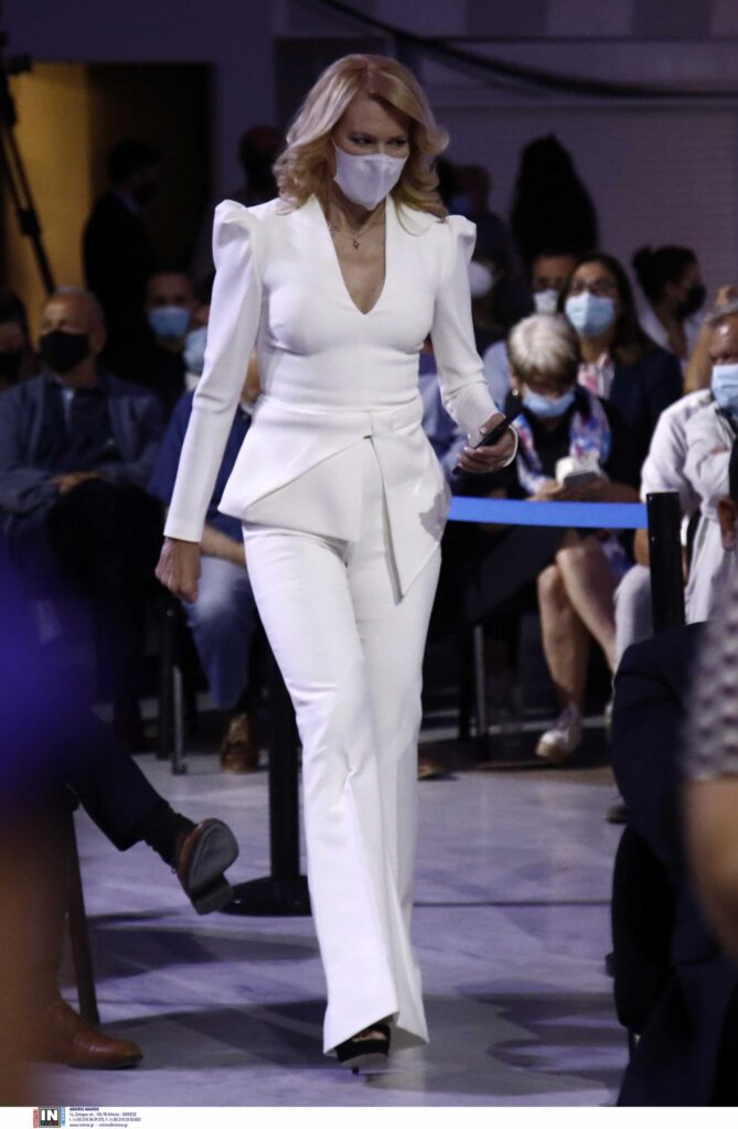 Στις αποχρώσεις του λευκού η ενδυματολογική επιλογή της Θεοδώρας Τζάκρη (βουλευτής Πέλλας).