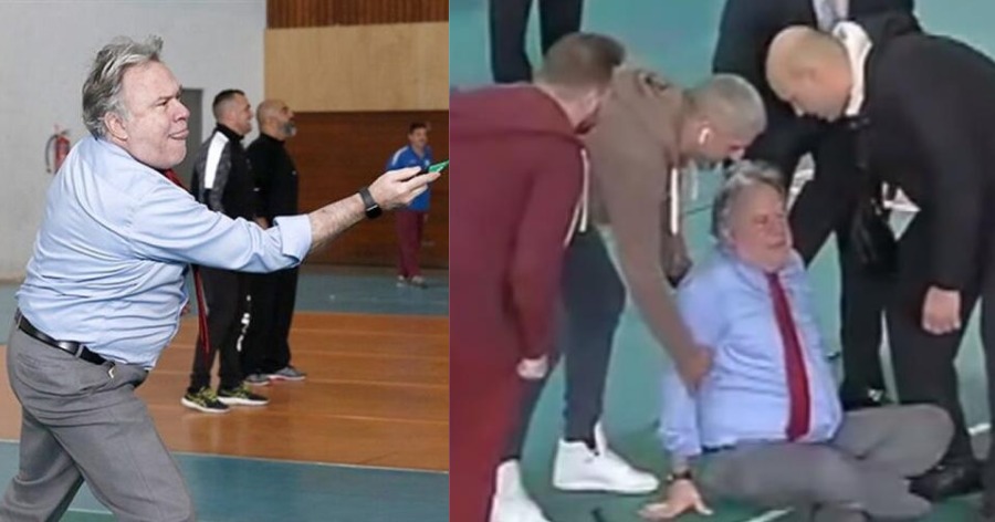 Η ΕΡΤ 3 έδειξε τη στιγμή του τραυματισμού του βουλευτή του ΣΥΡΙΖΑ, ο οποίος κατά τη διάρκεια του παιχνιδιού έχασε την ισορροπία του και έπεσε.