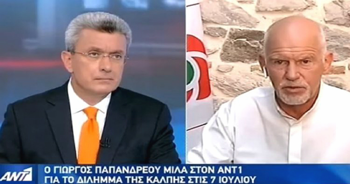 Γιώργος Παπανδρέου: «Δεν φταίμε εμείς. Καραμανλής, Σαμαράς και Τσίπρας οδήγησαν τη χώρα στα βράχια». Τα παραπάνω σημείωσε ο κ. Παπανδρέου σε τηλεοπτική του συνέντευξη.