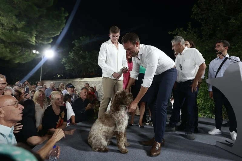 Ειδικότερα, ο υποψήφιος πρόεδρος του ΣΥΡΙΖΑ φώναξε στη σκηνή τον Τάιλερ, ο οποίος παρακολουθούσε την ομιλία του και μαζί ανέβηκε και ο αγαπημένος τους σκύλος.
