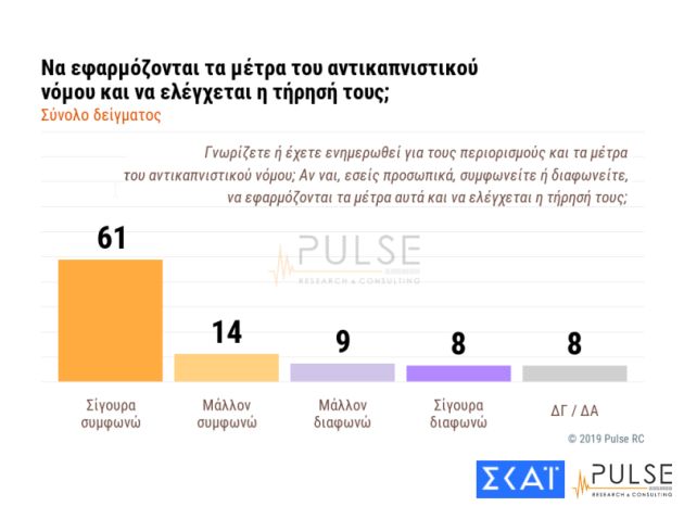 Τέλος, το 75% των ερωτηθέντων συνολικά συμφωνεί με την τήρηση του αντικαπνιστικού νόμου.