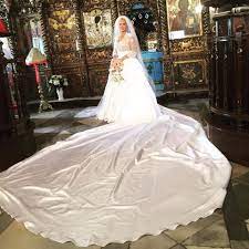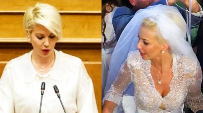 Όπως ανέφερε ρεπορτάζ της Espresso, η βουλευτής φορούσε νυφικό με τεράστια ουρά (της σχεδιάστριας Άννας Βενέτη), έφτασε στην εκκλησία στις 14.30 το μεσημέρι, με μια Rolls Royce Silver Shadow, ενώ βγαίνοντας από το αυτοκίνητο, 19 παράνυμφες κράτησαν την ουρά του νυφικού και η ίδια προχώρησε συνοδευόμενη από τον πατέρα της.