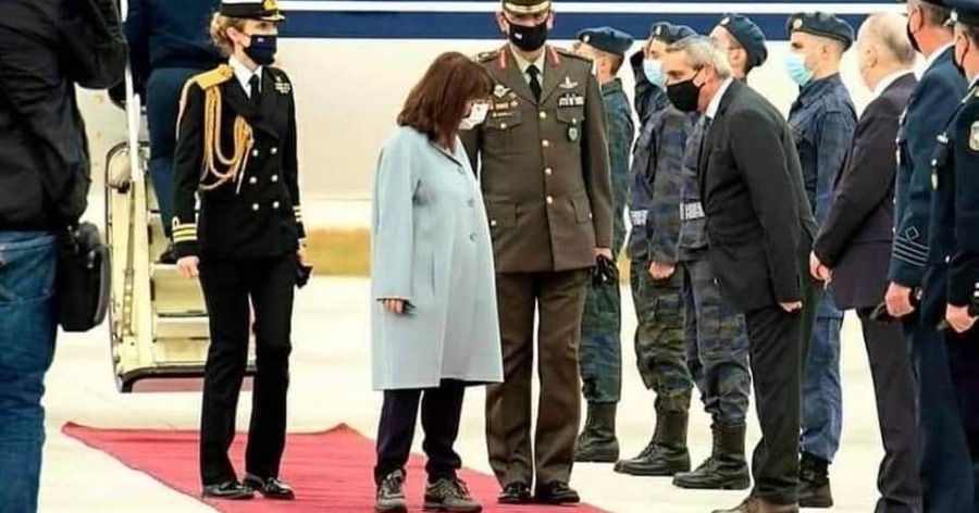 Η Κατερίνα Σακελλαροπούλου έφτασε στη Ρόδο, προκειμένου να παρευρεθεί στις εκδηλώσεις για την ενσωμάτωση της Δωδεκανήσου στην Ελλάδα και η εμφάνισή της, καθώς και οι στιλιστικές της επιλογές, σχολιάστηκαν αρνητικά.