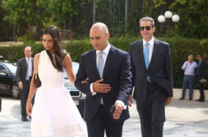 Κωνσταντίνος Μπογδάνος: Ο νεοεκλεγείς βουλευτής της Νέας Δημοκρατίας, ήθελε να εκφράσει τα πατριωτικά του αισθήματα στην ορκωμοσία. Φόρεσε γραβάτα με την Ελληνική σημαία. Στο πλευρό του, βρίσκεται η γυναίκα του Ελένη Καρβελά.