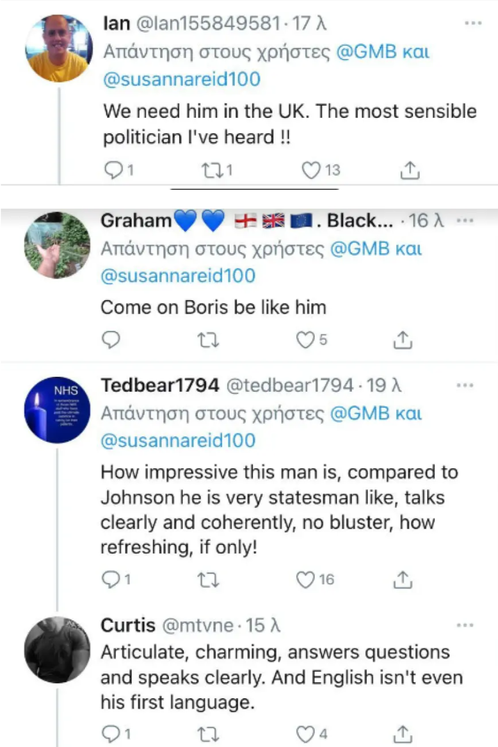 Διαβάστε τα σχόλια των τηλεθεατών στο Ηνωμένο Βασίλειο κάτω από την συνέντευξη του @kmitsotakis μόνον υπερηφάνεια μπορεί να αισθάνεται κάποιος όταν εκπροσωπείται έτσι. Μπράβο Πρόεδρε https://t.co/shfgTFPHNf